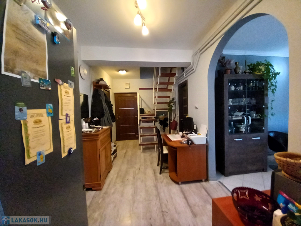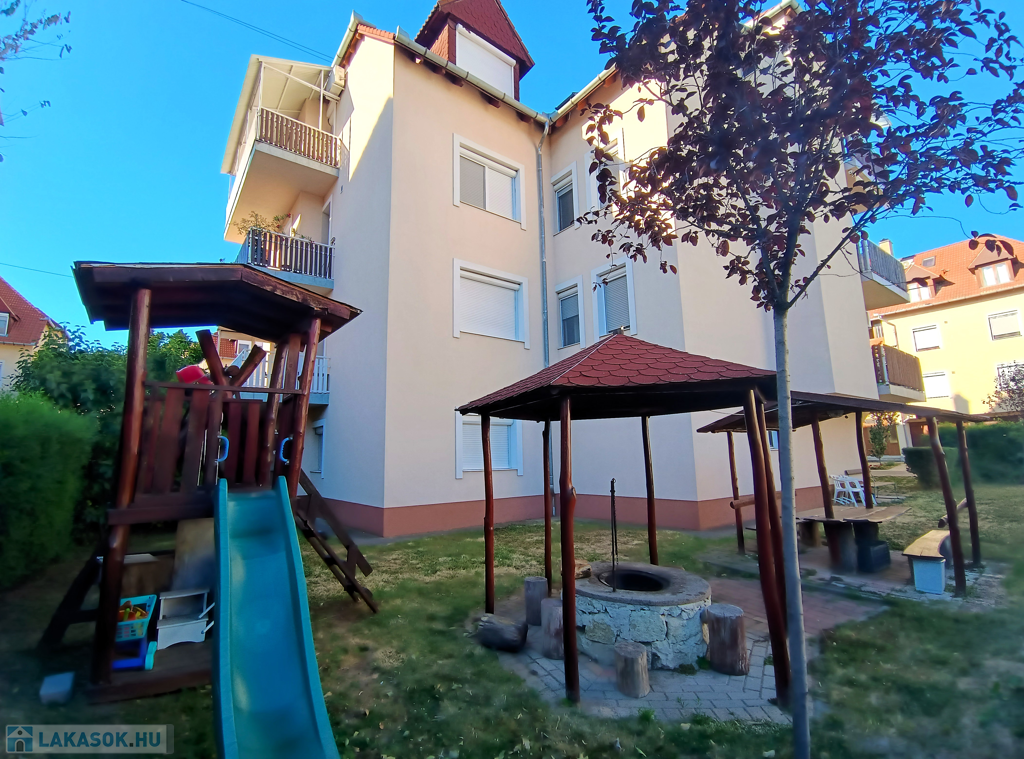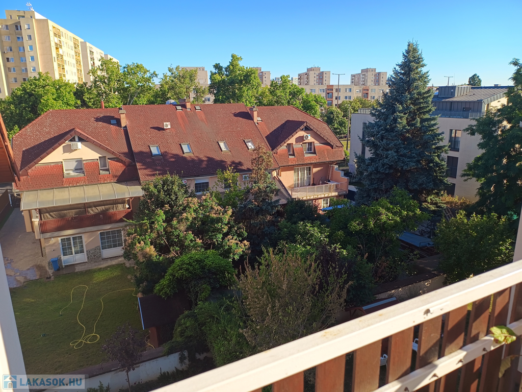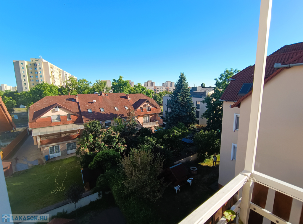 A négyszintes, háromemeletes téglaépítésű társasház 1999 szeptemberében került átadásra. Az ingatlan a harmadik emeleten található, belső kétszintes, duplakomfortos és egy szép nagy nyugati fekvésű bő 10m²-es erkéllyel rendelkezik. Gyerekekkel, barátokkal kültéri kikapcsolódásra kiválóan alkalmas udvarán filagória, csúszda, hinta, főzőhely kapott helyett. A hozzátartozó 12m²-es garázs az ingatlan alatt helyezkedik el, ára 10 millió Forint, megvétele opcionális.