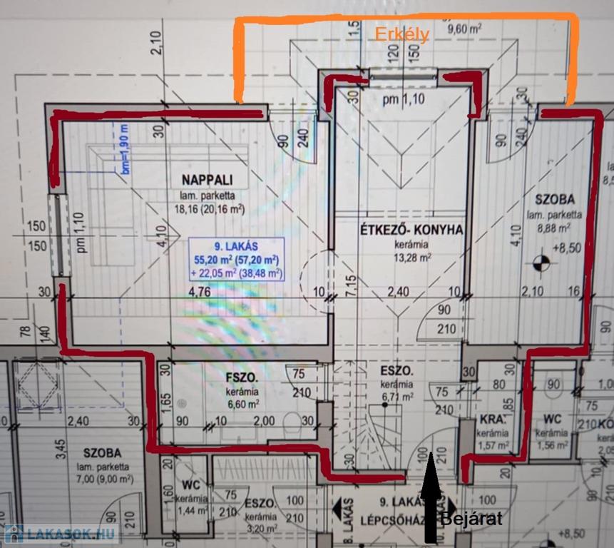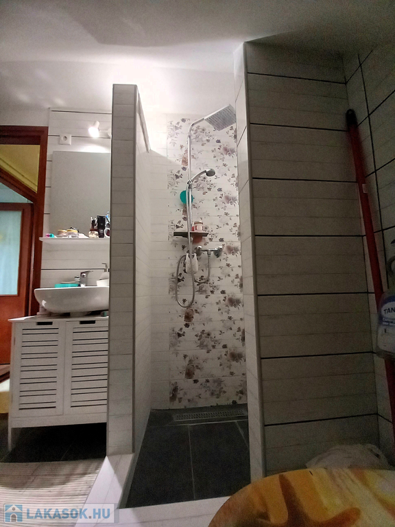 - A felső szobák, és az előszoba padlózata laminált parketta, a többi helyiség csempével burkolt.