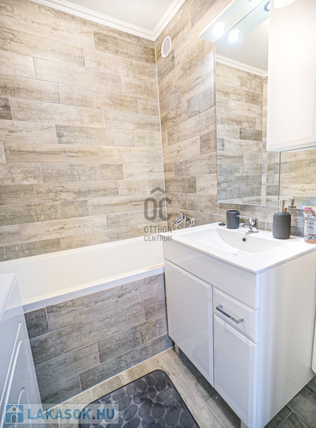 A kialakításban és burkolataiban megújult fürdőszoba és a WC külön helyiségben,