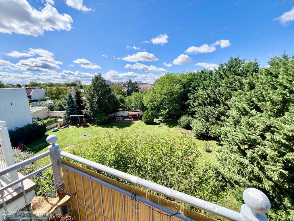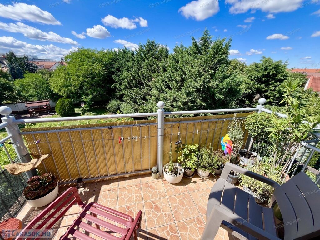 - A lakáshoz egy 5,25 m²-es erkély is tartozik, újonnan felszerelt, kihajtható napellenzővel, mely a gondozott, automata öntözőrendszerrel ellátott belső udvarra néz.