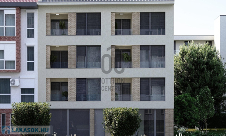 Földszinten egy 33 m2 - es iroda + a gépkocsi parkolók kerülnek kialakításra, 1 - 2 - 3 emeleten szintenként 2 db lakás, + a 4. emeleten egy tetőtéri, nettó 70 m2 - es iroda kerül megépítésre.
