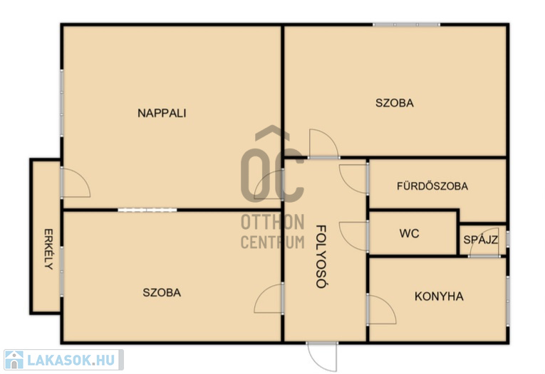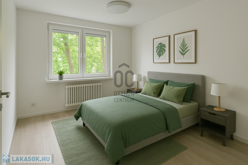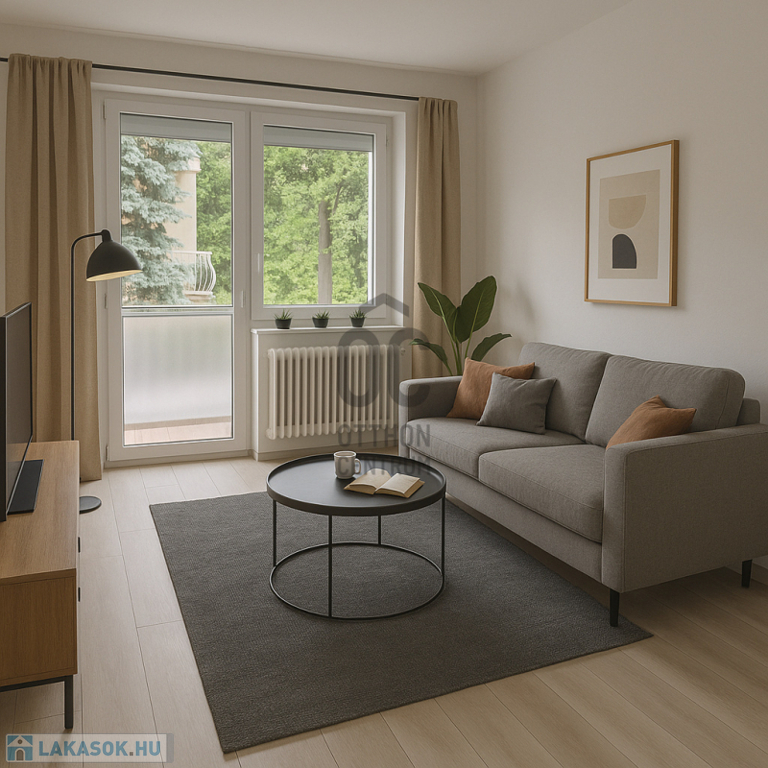 Tágas nappali ahonnan közvetlen kijárat van az erkélyre + 2 külön nyíló szoba