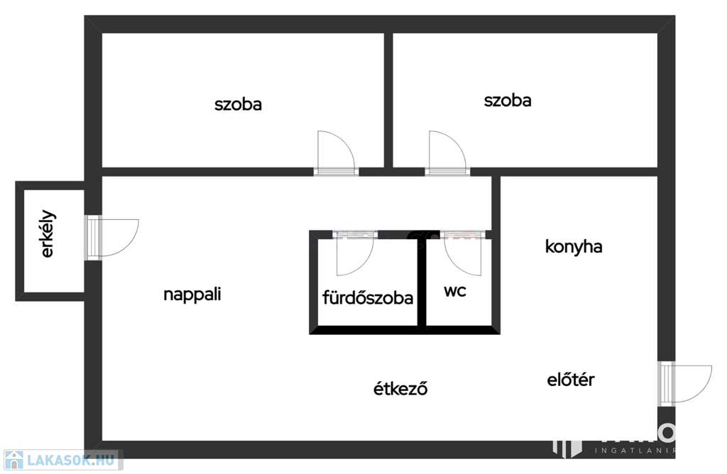 - Elrendezés: nappali + 2 külön nyíló szoba