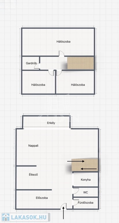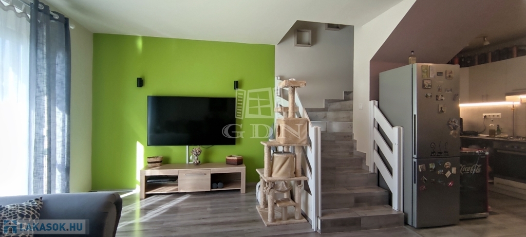 Az 1.emeleten, 71,59 m²-es, 2009-ben épült lakás, amely egy rendezett, 13 lakásos társasházban található. Az alsó szinten amerikai konyhás nappali, fürdőszoba található. Fent pedig 3 hálószoba + gardróbszoba kapott helyet (a gardrób akár fürdőszobává is alakítható, a kiállások adottak).