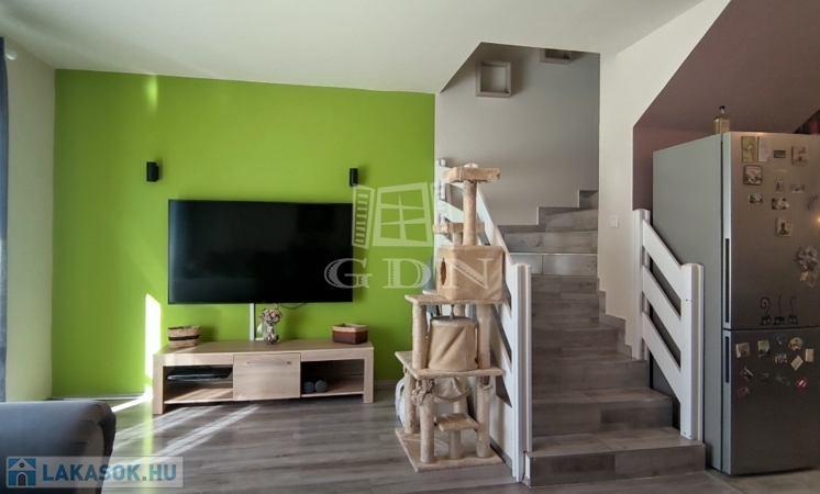 Az 1.emeleten, 71,59 m²-es, 2009-ben épült lakás, amely egy rendezett, 13 lakásos társasházban található. Az alsó szinten amerikai konyhás nappali, fürdőszoba található. Fent pedig 3 hálószoba + gardróbszoba kapott helyet (a gardrób akár fürdőszobává is alakítható, a kiállások adottak).