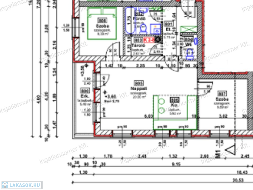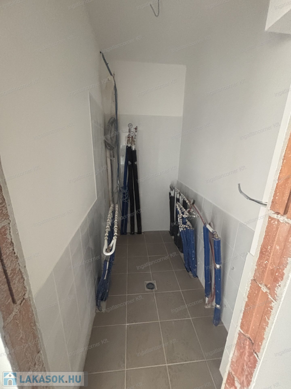 8, lakás nettó 57,05 m2, + 5,4 m2 erkély, nappali + 2 háló, fan-coil klíma (a hálószobákban kiállás előkészítés), riasztó, kaputelefon, 2db parkoló