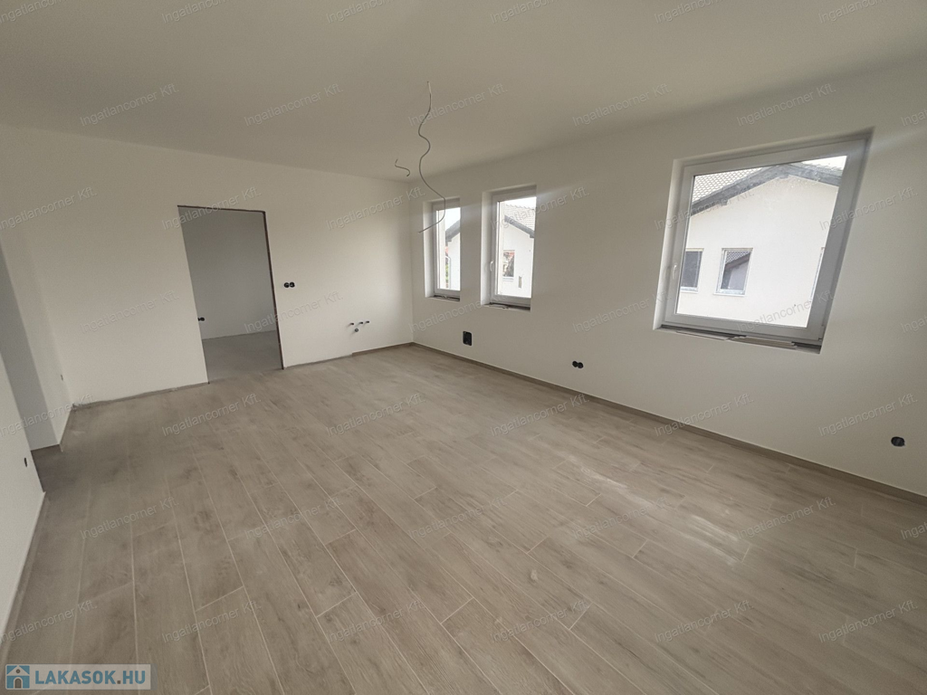 4, lakás nettó 59,77 m2 + 9,74 m2 terasz, nappali + 2 háló, 108 m2 telek, fan-coil klíma (a hálószobákban kiállás előkészítés), riasztó, kaputelefon, 2db parkoló
