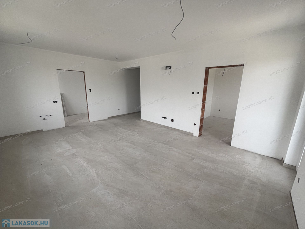3, lakás nettó 60,77 m2 + 9,29 m2 terasz, nappali + 2 háló, 119 m2 telek, fan-coil klíma (a hálószobákban kiállás előkészítés), riasztó, kaputelefon, 2db parkoló