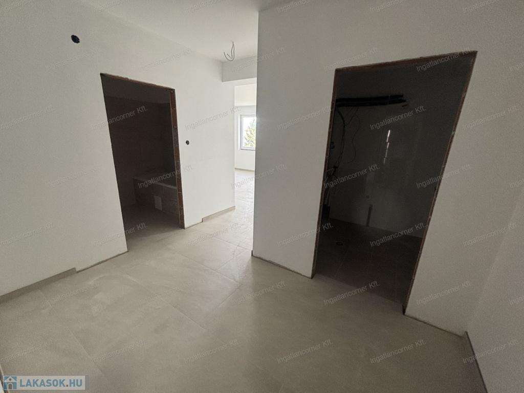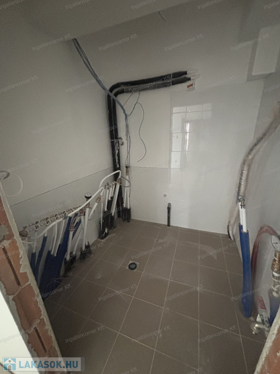 8, lakás nettó 57,05 m2, + 5,4 m2 erkély, nappali + 2 háló, fan-coil klíma (a hálószobákban kiállás előkészítés), riasztó, kaputelefon, 2db parkoló