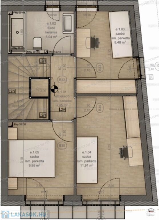 Magas minőségű burkolatok (8000 Ft/nm), a hideg/meleg burkolat és a beltéri ajtók színe választható.