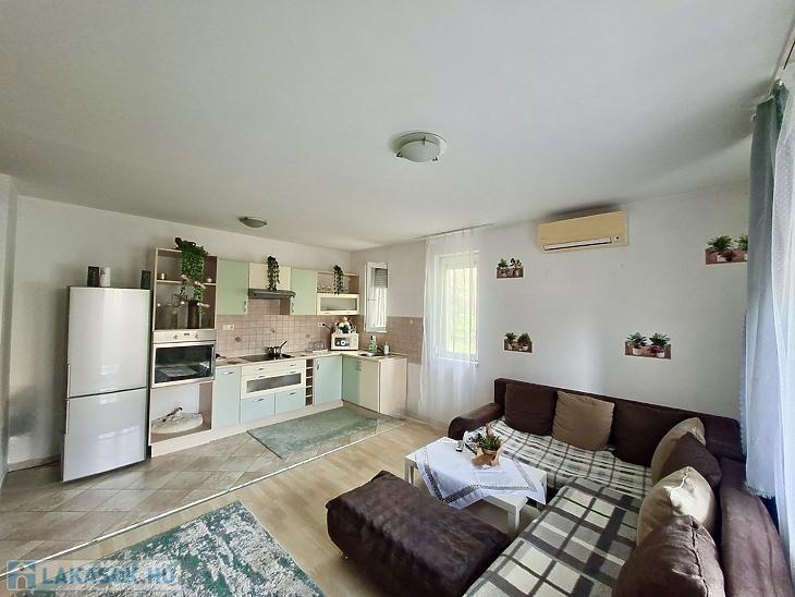 A 2006-ban épült, rendezett és folyamatosan karbantartott társasház külsőleg 10 cm-es hőszigetelést kapott, amely hozzájárul az alacsony fenntartási költségekhez. A lakás kiváló állapotú, praktikus elrendezésű: amerikai konyhás nappali, külön hálószoba, fürdőszoba, külön WC, valamint előtér került kialakításra.