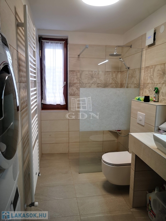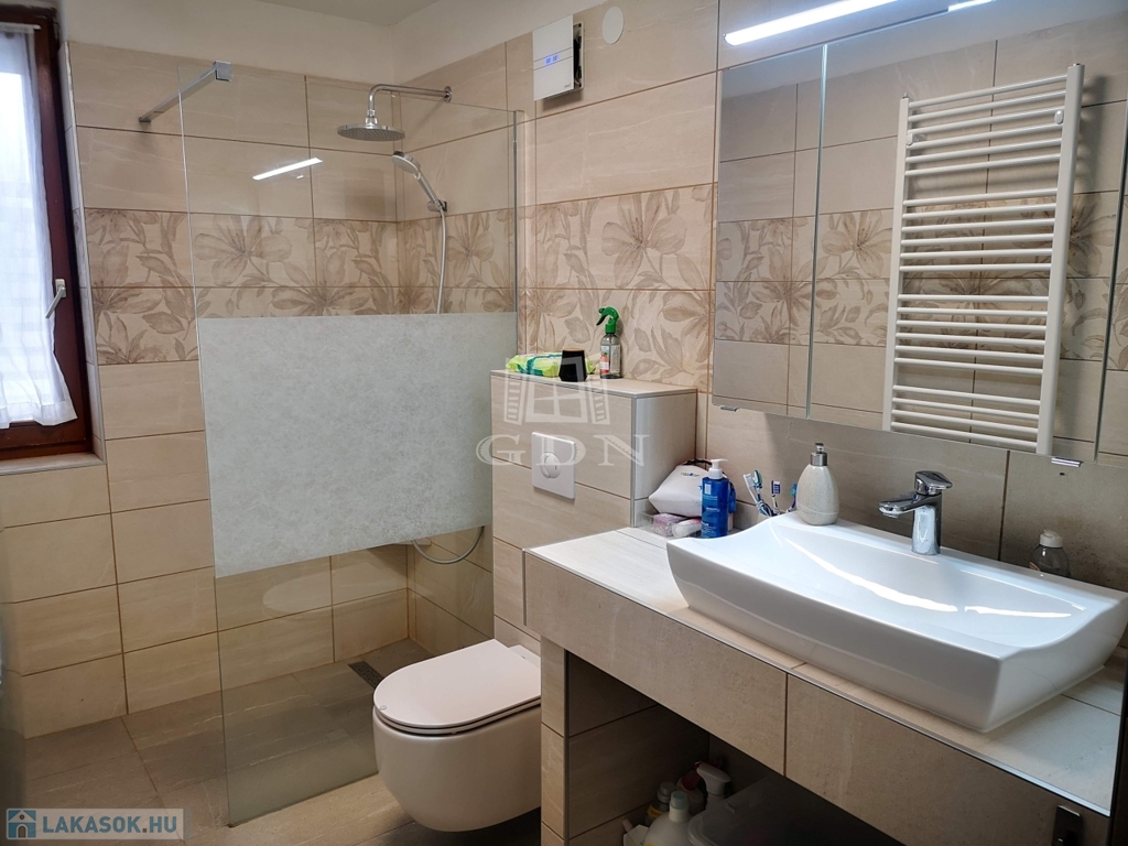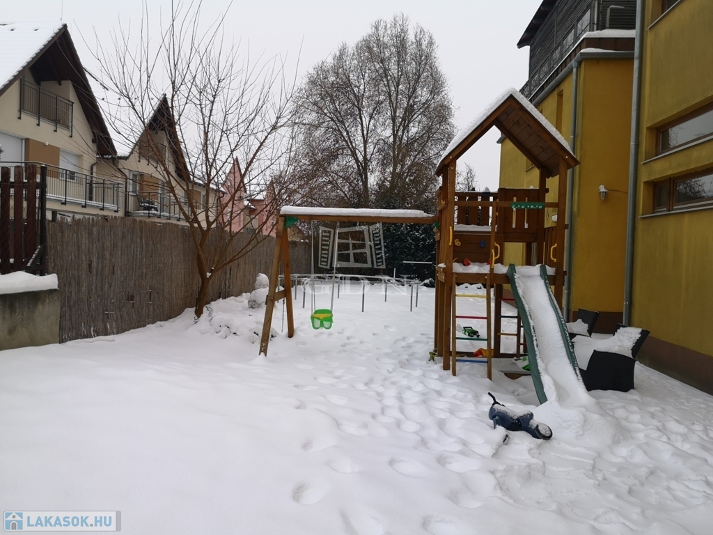 Dunakeszi Alagliget lakóparkban kínálunk eladásra, 2006-ban épült, 9 lakásos, tégla építésű társasházban, egy emeleti, nappali+ 3 hálószobás, francia erkélyes, igényesen felújított lakást, praktikus elrendezéssel, tágas terekkel. Tájolásának köszönhetően rendkívül világos. Konyhája gépesített, a nappaliban hűtő-fűtő klíma növeli a komfortérzetet, a nyílászárók redőnnyel, szúnyoghálóval felszereltek. A lépcsőház tiszta, rendezett, jó lakóközösséggel. A ház mögött közös kert található, gyermekek részére kialakított "kis játszótérrel". A lakáshoz tartozik egy saját, fedett beálló, illetve egy külső parkolóhely. Ideális választás ha vágyik egy igényes otthonra, kertvárosi hangulatra. Közelben található bevásárlási lehetőség, iskola, óvoda, buszmegálló.