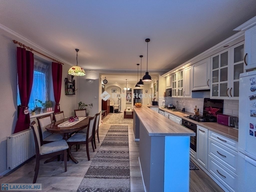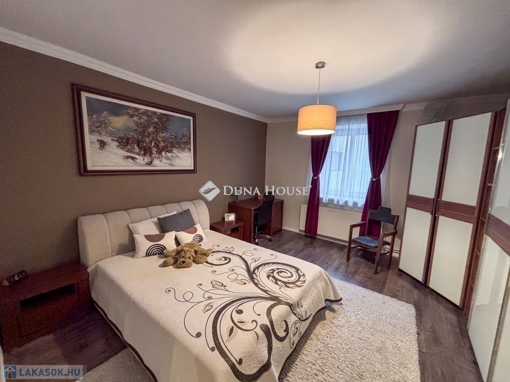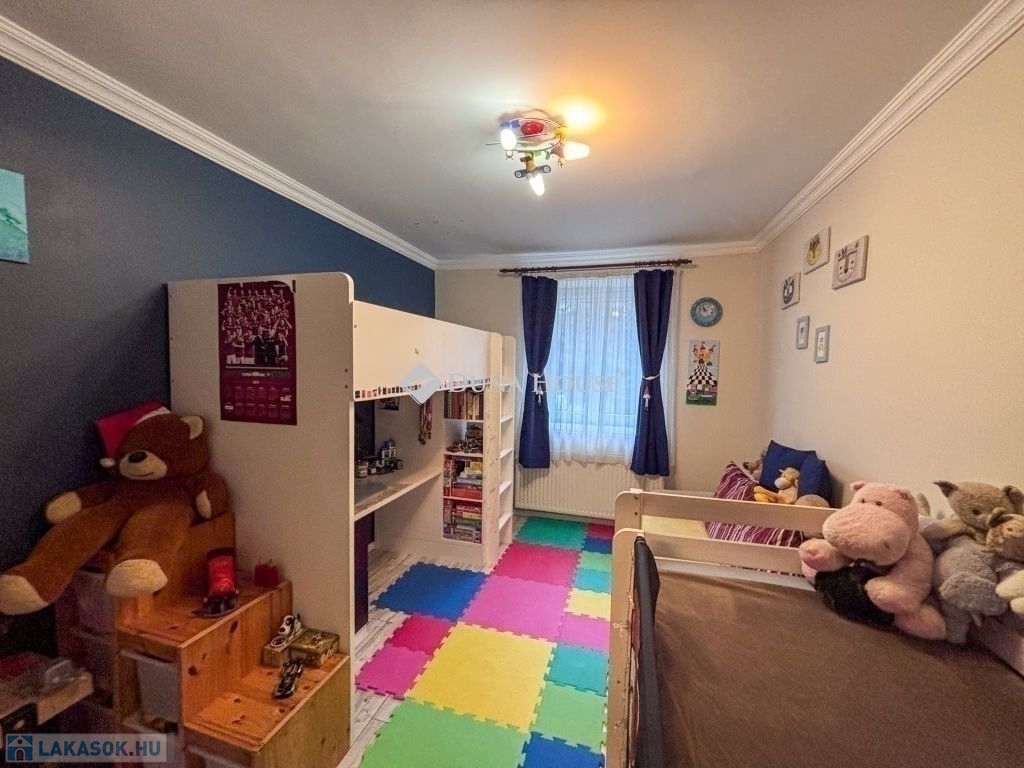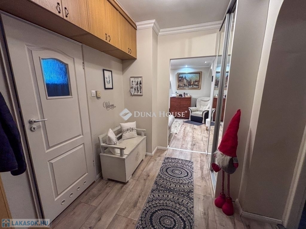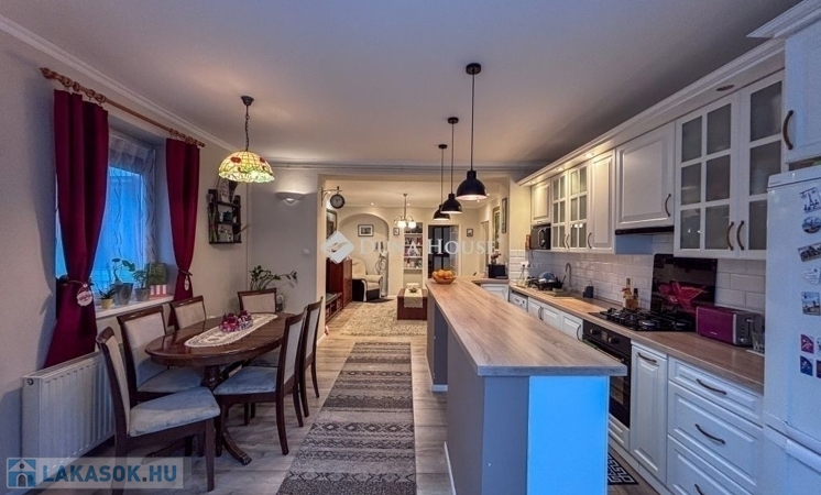Az ingatlan 5 évvel ezelőtt teljes körű felújításon esett át, így tisztasági festés után azonnal költözhető állapotban van. A lakás elosztása kiváló, két különnyíló szobával rendelkezik, amelyek 21 és 15 nm alapterületűek, valamint egy tágas, világos, 44 nm-es nappali-konyha-étkező alkotja az életteret. Továbbá tartozik hozzá egy 100 nm-es saját használatú kertrész faházzal, egy galériás garázs, saját parkolóhely közvetlenül a ház mellett, két pince, egy nagyobb, körülbelül 15 nm-es és egy kisebb, 5 nm-es.