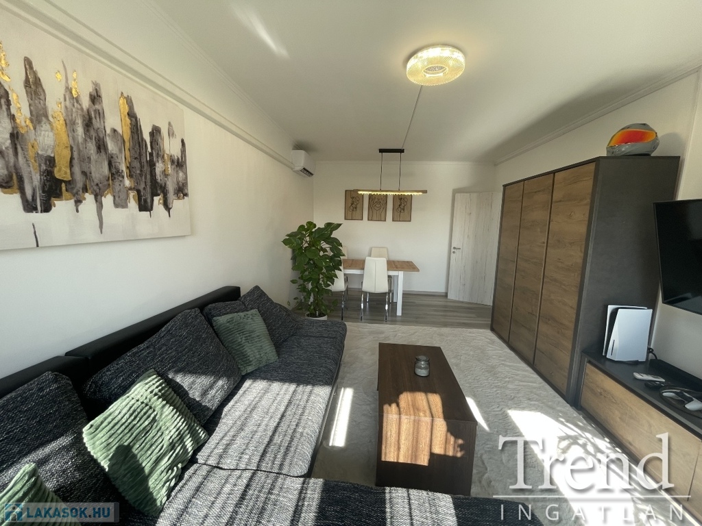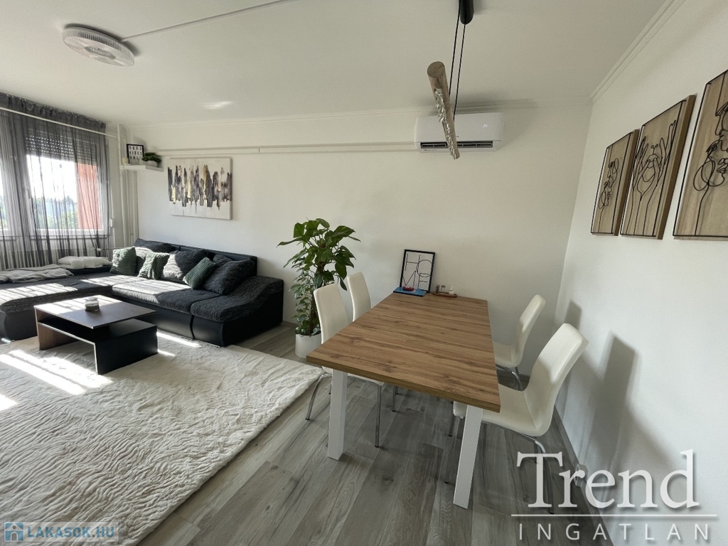 A nappaliba beépítésre került egy hűtő-fűtő klíma is, így nyáron kellemes hőérzetet lehet biztosítani a lakásban.