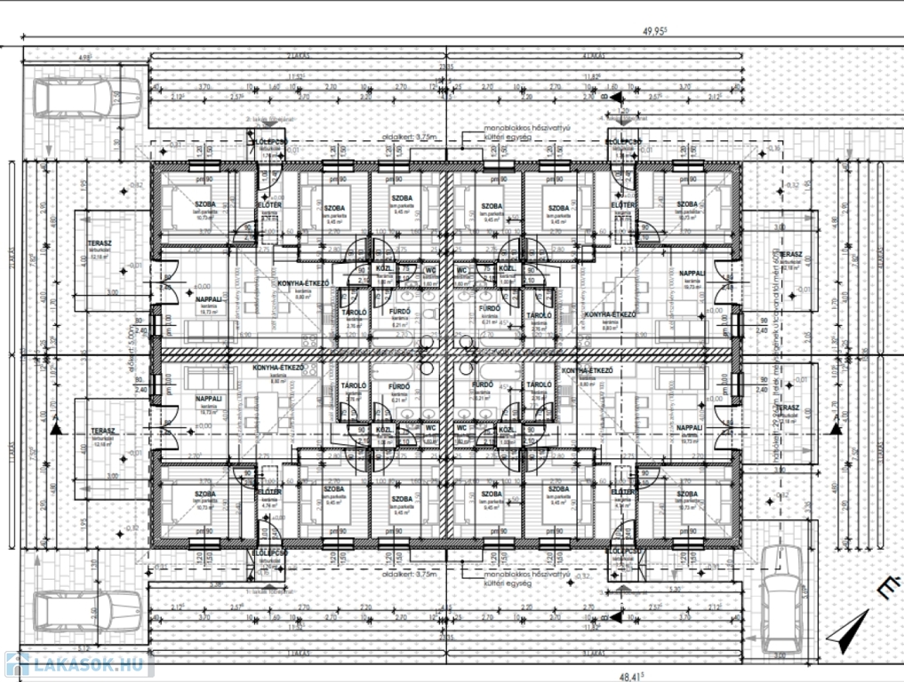 - lakásonként 1 autónak térkövezett beálló, egyéb rész murvázva,