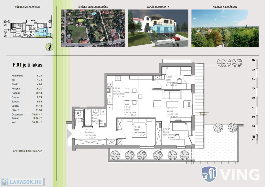 Érdliget patinás részén, Diósd határában, a 12.000 nm-es Érdligeti park közvetlen közelében eladó egy AA+ hőtechnikai besorolású 11 lakásos modern társasház földszinti: