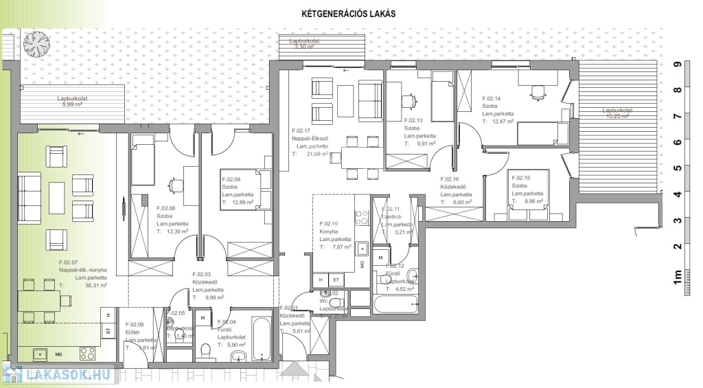 -II.11 lakás 92,84 m2; terasz: 99,8 m2 ár: ELKELT!