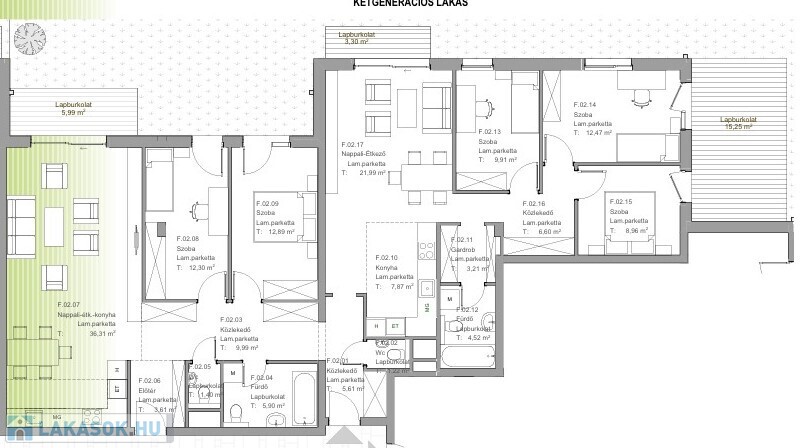 2. Igény szerint egy 164,3 m²duplakomfortos hatalmas lakás, VAGY két különálló lakrész