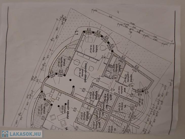 A hálószobák laminált parkettásak, a többi helyiség járólappal burkolt, a nyílászárók pedig műanyag termo üvegesek.