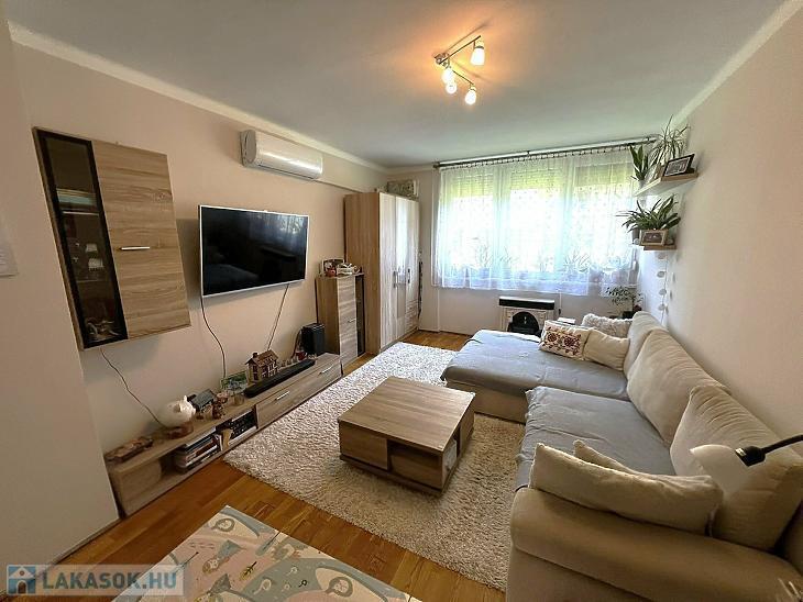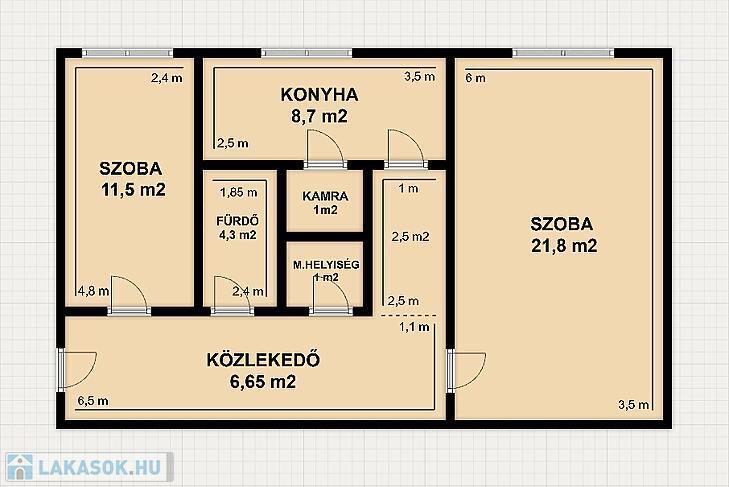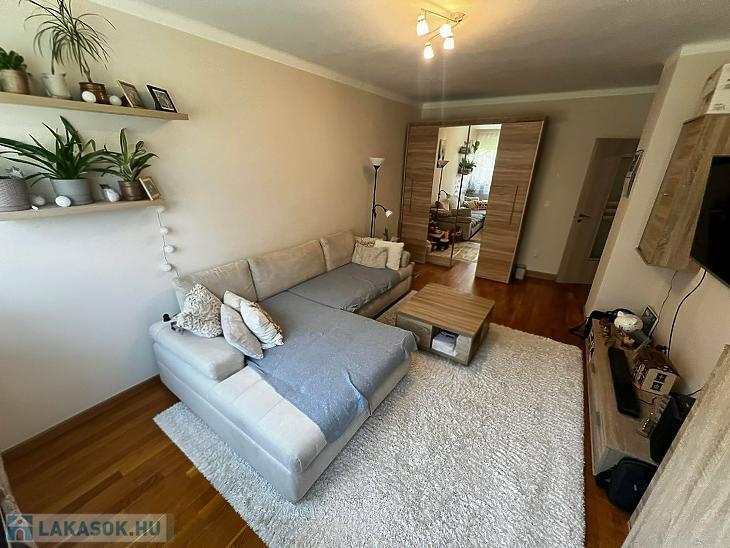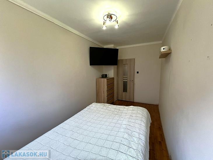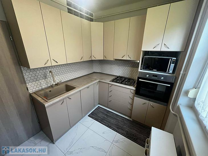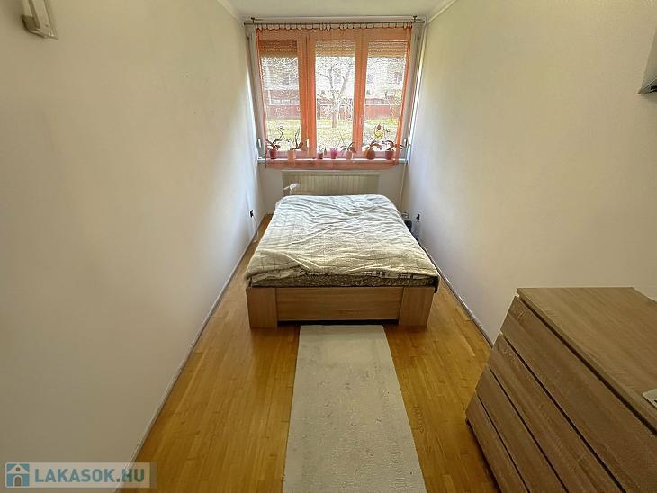 2 szoba, ablakos konyha, zuhanyzós fürdőszoba, mellékhelyiség, kamra.