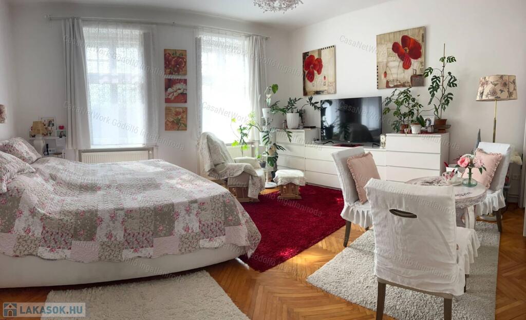 Az épület történelmet ír, a lakás megőrizte polgári jellegét nagy belmagasságával, gyönyörű eredeti fa ajtókkal, ugyanakkor harmonikus, de modern lakberendezéssel, és felújított műszaki megoldásokkal. Két tágas szobája külön bejáratú, de átjárható egyben. A lakás a hozzá tartozó lépcsőházból közelíthető meg. A padlástér jól használható tárolásra.