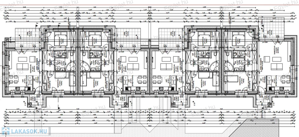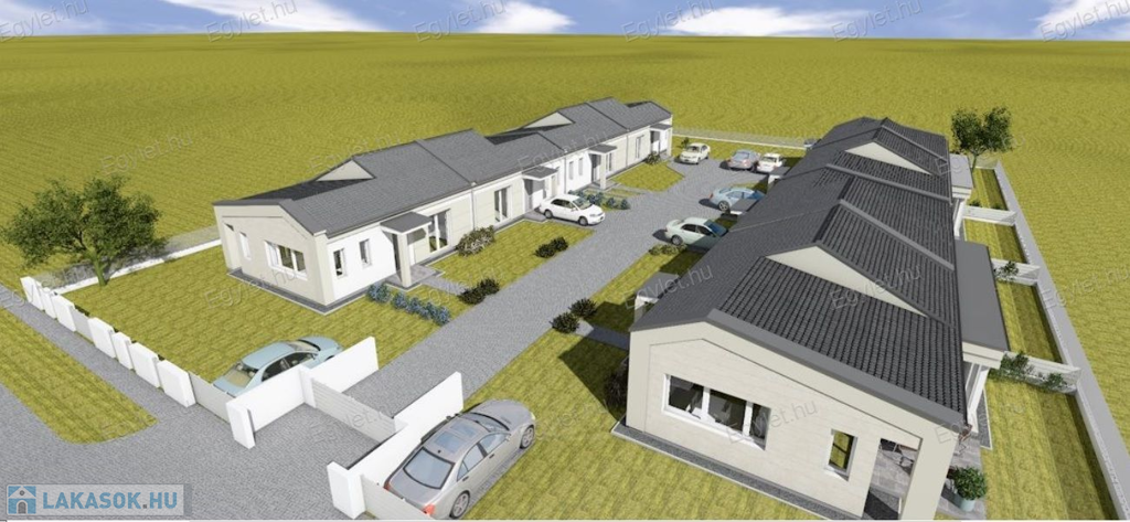 Összesen négy lakás található ebben a sorházban 61-80 nm közötti méretben, valamint 180-344 nm privát telek méretekkel.
