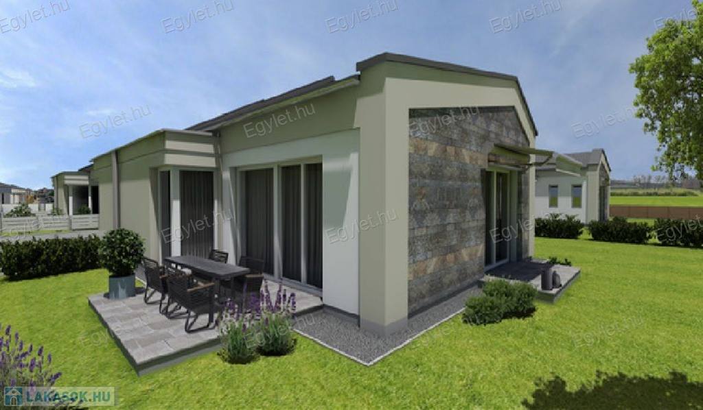 Az ingatlan igényes kivitelezéssel, minőségi alapanyagokból, átgondolt tervezéssel, egyedi belső kialakítással készült, ahol a kényelem és az átgondolt tervezés mellett az energia takarékosság volt a fő szempont. Az ingatlan nappalijából egy 10 nm-es teraszon keresztül tudjuk megközelíteni a körbekerített privát kertet. A ház fűtéséről és használati melegvíz ellátásáról egy hőszivattyú gondoskodik, padlófűtéssel kombinálva. Ennek köszönhetően a rezsi költségek kedvezően alakulnak. A házhoz tartozó privát kert mérete: 304 nm.