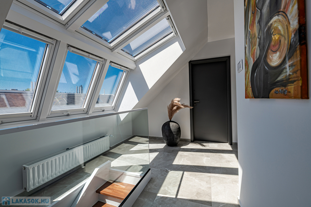 Belvárosban, liftes társasház felső szintjén, modern, minőségi otthon várja Tulajdonosát.