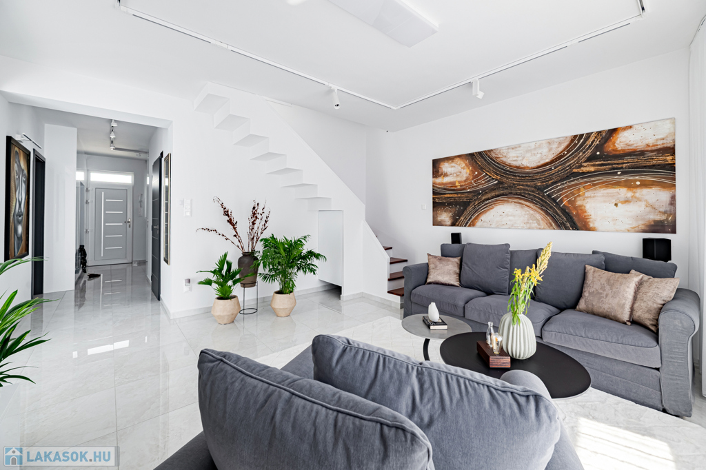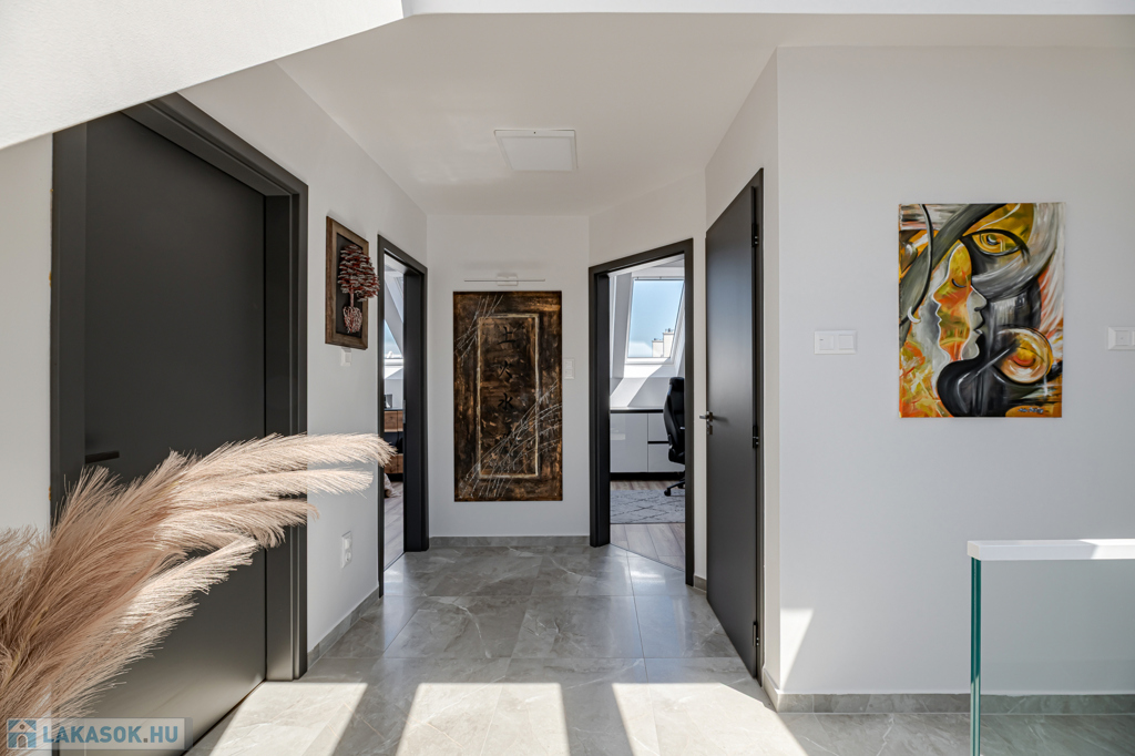 A villanykapcsolók okos-kapcsolók, a mennyezeti lámpák Philips HUE okos-lámpák, távolról is irányíthatóak. OKOSOTTHON rendszerrel felszerelve, mely Home Assistant alapú, tovább bővíthető és teljesen személyre szabható.