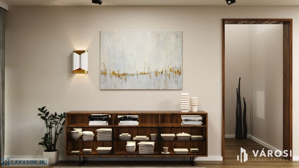 A hirdetésben szereplő látványtervek jól mutatják, milyen otthonosan berendezhető, jól élhető lakás lesz belőle.