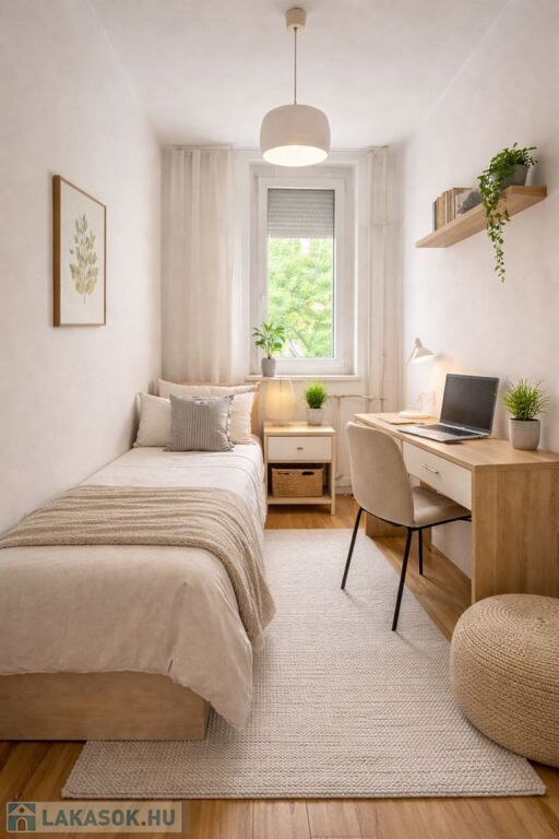 Elrendezése praktikus: konyha, egy kisebb és egy nagyobb szoba amelyek könnyen variálhatóak, spájz és fürdőszoba.