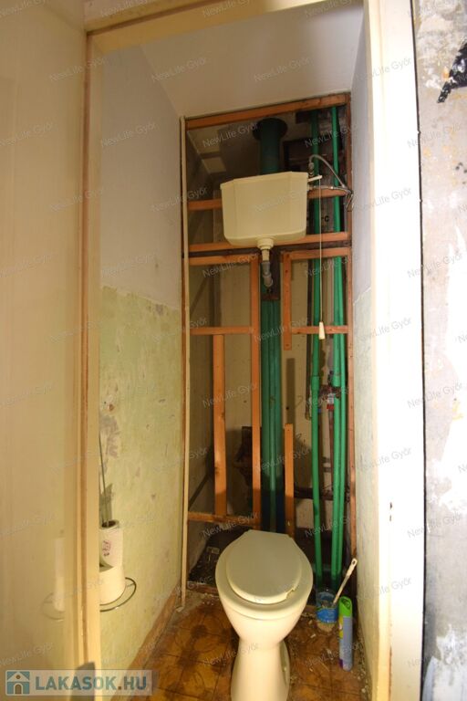 A belső felújítási munkálatok elkezdődtek, a régi tapétát eltávolították, a burkolatok a függőleges felületekről illetve a konyhabútor is elszállításra került. A fürdőszobai kádat is kimozdították, a mosdókagyló már nincs bent.
