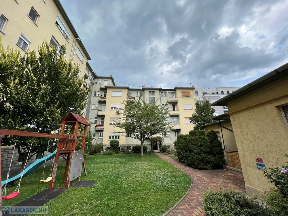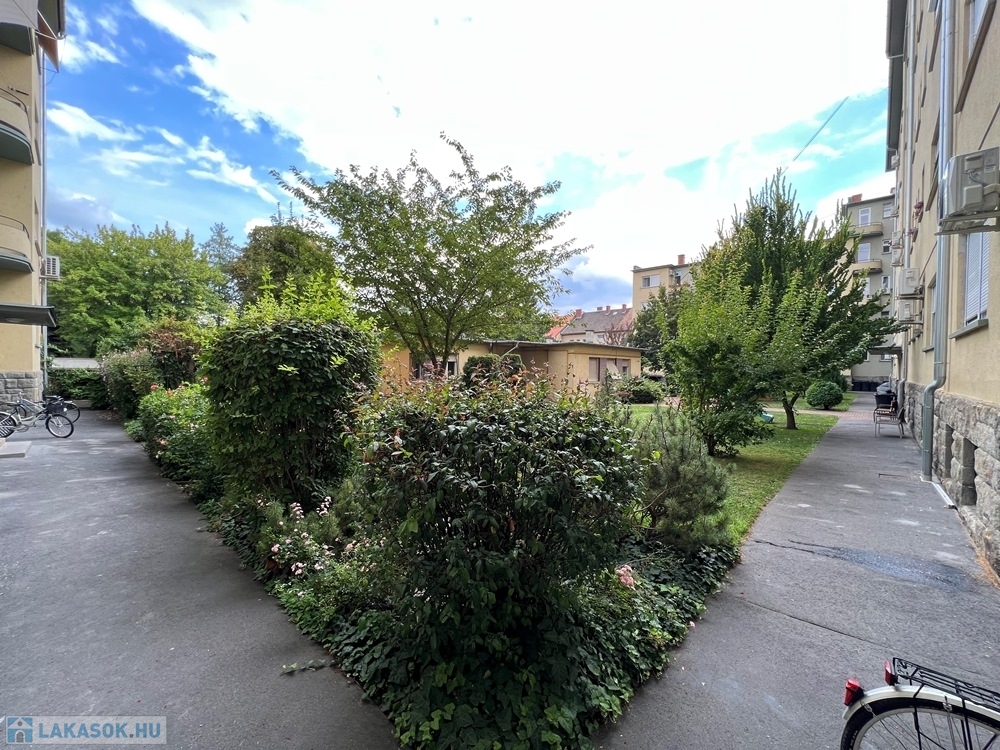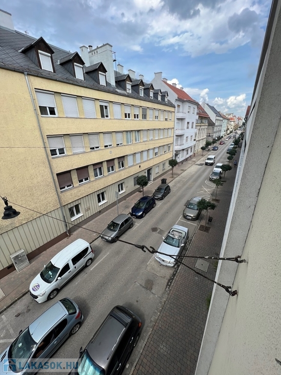 Győr-Belvárosának rendkívül kedvelt részén, Baross úttól, Széchenyi tértől pár perces sétatávolságra, a Munkácsy Mihály úton, rendezett, zárt belső udvarral, kerttel rendelkező, hangulatos, liftes társasház 1. emeletén, konyha – étkező + nappali + 1 hálószobás, továbbá különálló fürdőszobával, különálló WC-vel, különálló kamrával, 2,73 m2-es ERKÉLLYEL felszerelt, 55 m2 hasznos alapterületű, alacsony rezsijű téglalakás, saját 3,4 m2-es TÁROLÓVAL, Zsinagógára való rálátással eladó.