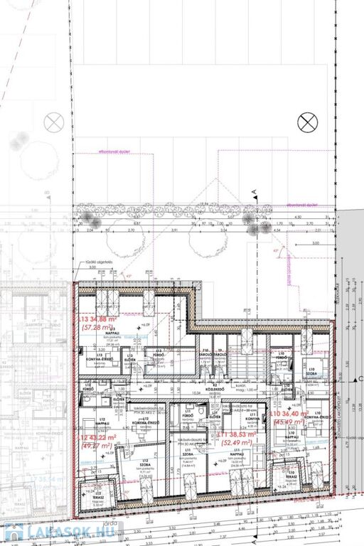 L13 tetőtéri lakás bruttó 57,27 m2, (nettó 34,88 m2).