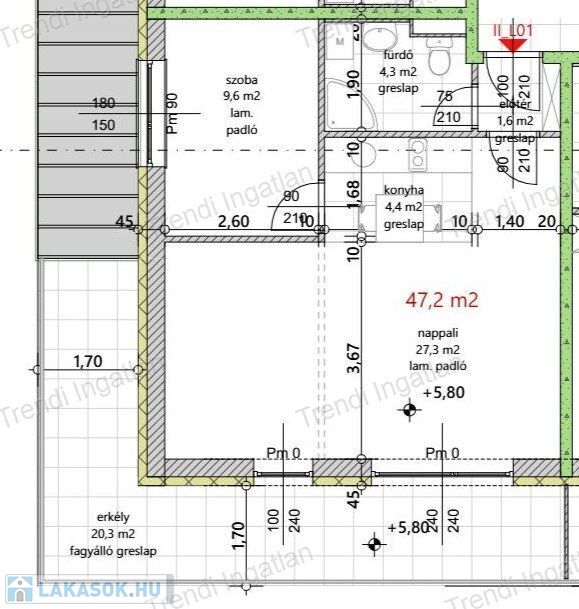 A meghirdetett 2. emeleten található 47,20 nm-es lakásban amerikai konyhás nappali, szoba, fürdőszoba, külön WC, előtér kerül kialakításra. Nappaliból tágas 20,30 nm-es erkély nyílik.