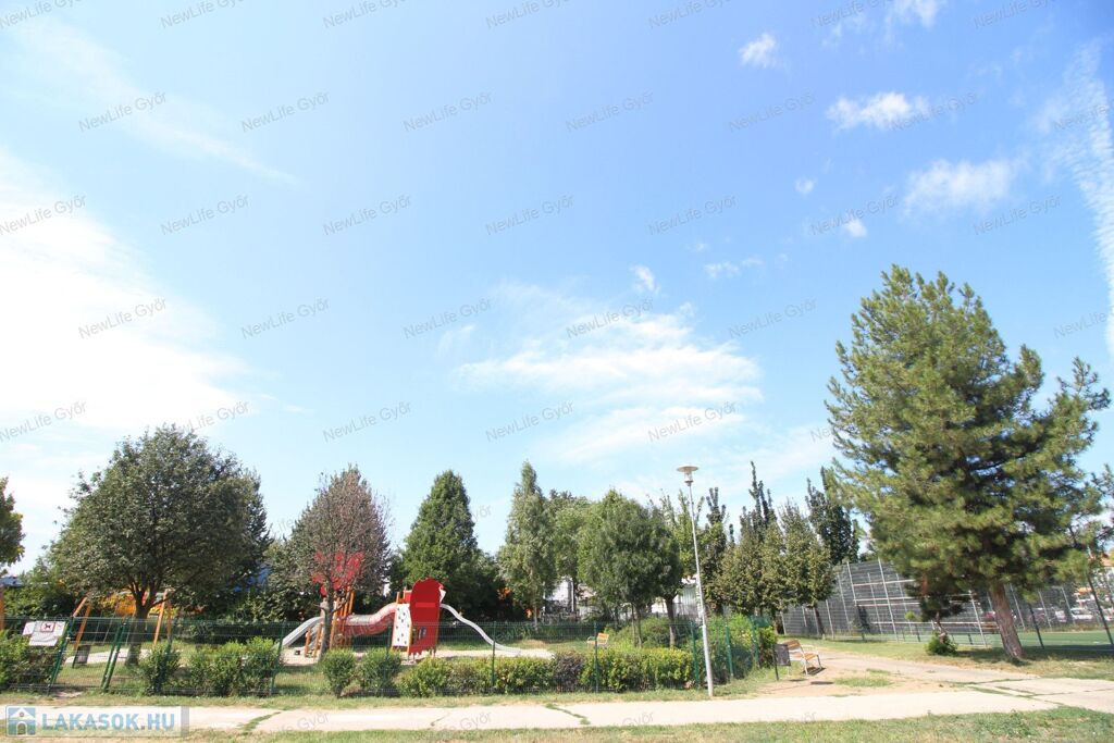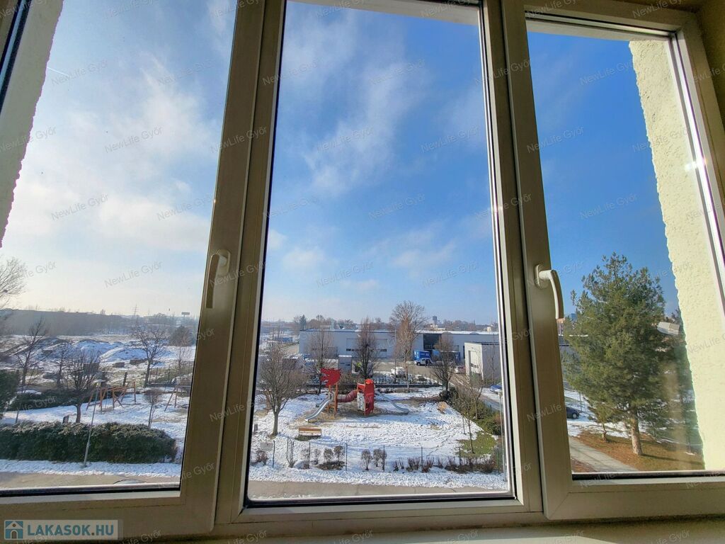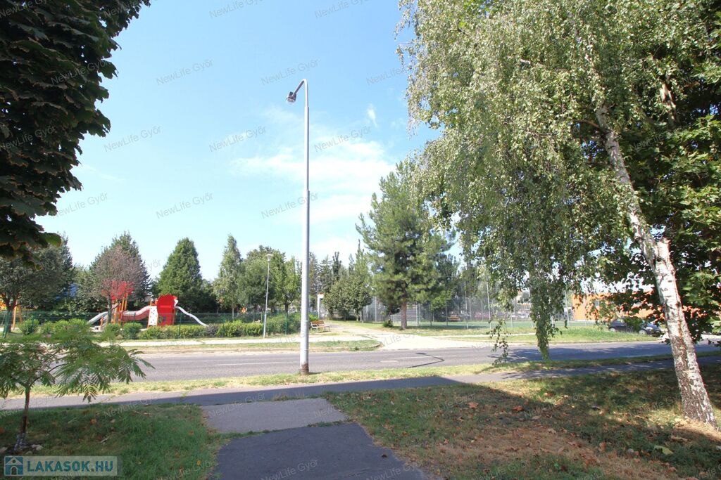 A lakás frekventált, mégis csendes helyen van, alacsony forgalmú utcában, ahonnan gyalogosan is mindent kényelmesen meg lehet közelíteni, autóval 1-2 perc alatt szinte mindent. Közel van az Árkád, ETO Park, Aldi, Lidl, Interspar, OBI, kisebb boltok, benzinkút, dohánybolt stb. Gyerekek számára bölcsőde, óvoda, iskola, gyermekorvos, valamint park és játszótér. A ház környékén a közterületen ingyenes a parkolás és mindig van szabadhely.