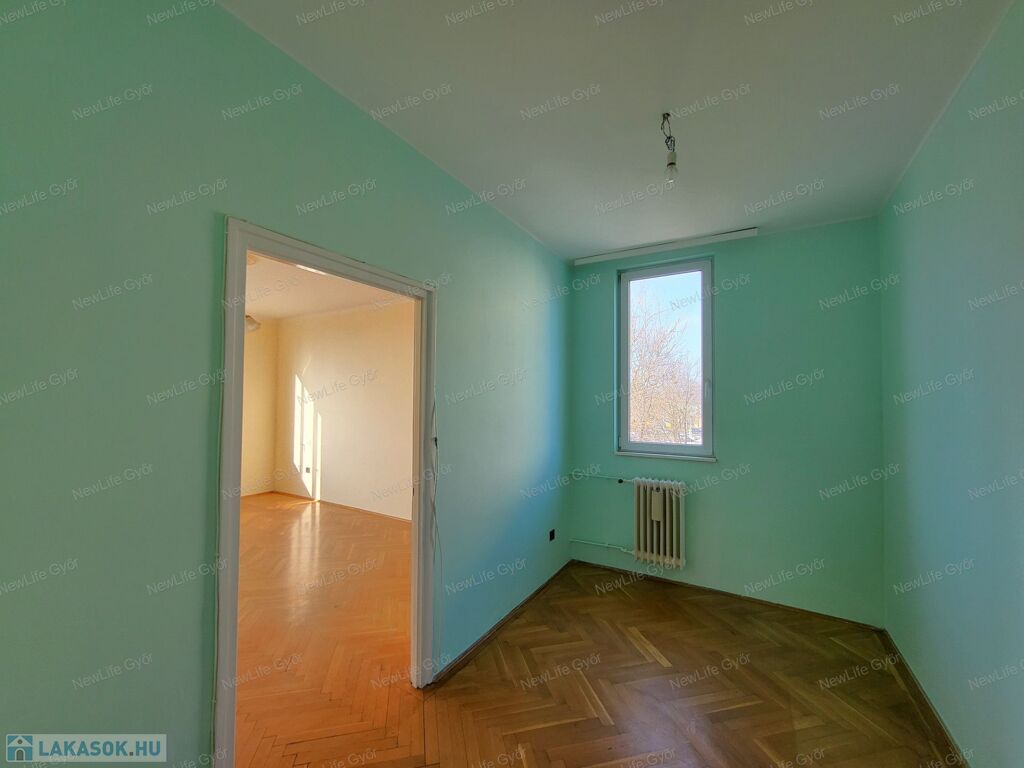 Győr Gyárvárosban, a Tompa utca csendes részén vár Téged egy teljesen jó állapotú, azonnal költözhető, 56 m2-es, 2 szobás téglalakás, zöld, parkos övezetre néző panorámás kilátással, saját tárolóval.