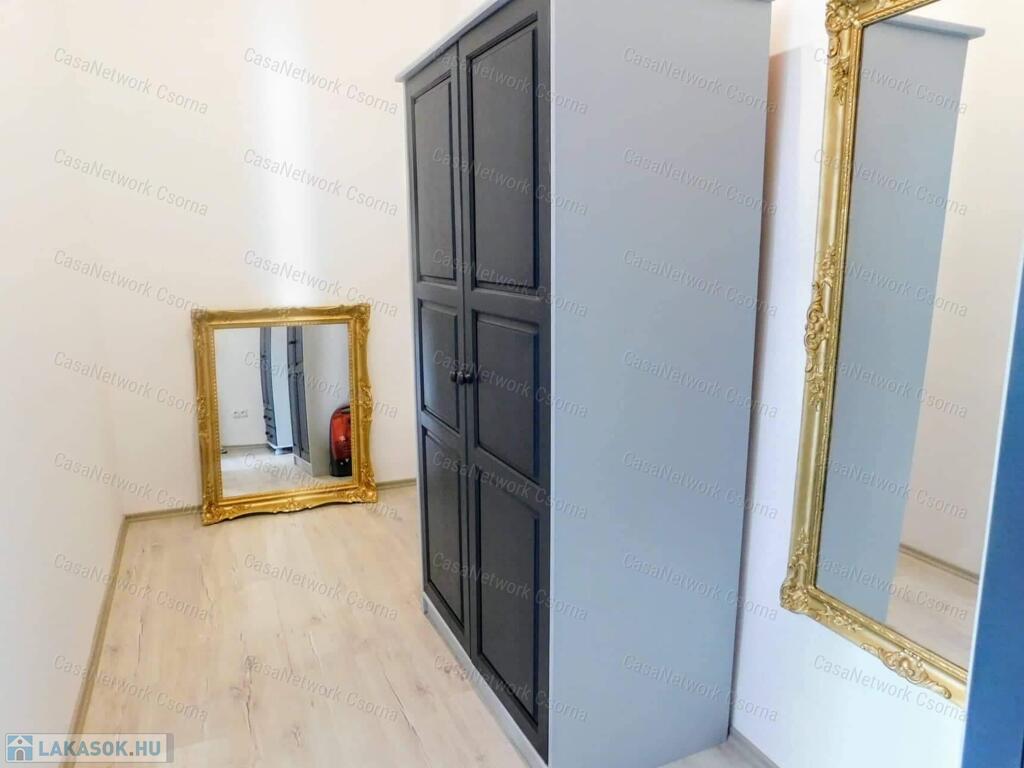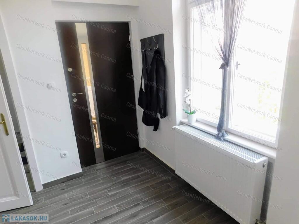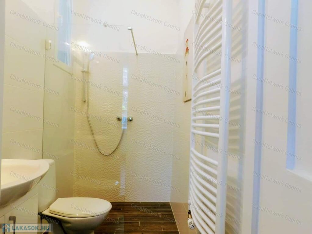 Győr szigetben, a Bercsényi liget 52. szám alatt, öt lakásos társasházban alacsony rezsijű, földszinti, téglaépítésű 74 m2-es polgári lakás eladó. Az ingatlan rendkívül jó alaprajzi elrendezésű. A lakás egy a lépcsőházból nyíló lakáshoz tartozó gangról nyílik. Egy amerikai konyhás nappali, két hálószobából, egyik hálószobából nyíló gardróbból, egy zuhanyzós és wc-t is tartalmazó fürdőből és egy különálló wc -ből áll. A fürdő és a wc ( light hof ) légudvarra szellőzik. A meleg vízről és a fűtésről radiátoros hőleadók és egy kondenzációs gázkazán gondoskodnak (saját bélelt kémény). A 2020 - ban történt teljeskörű felújítás során kismértékben az alaprajz is, valamint a teljes gépészet, a villany, víz, és gáz vezetékek kicserélésre kerültek. Természetesen a közművek felújításán túl az összes burkolat is megújult.A pincében külön 15 m2-es saját tároló, padlásrész. Parkosított, zárt belső udvar.Belváros, egyetem, élményfürdő, bevásárlóközpont karnyújtásnyira találhatók. Kiváló lakóközösség.Amennyiben bármilyen kérdés felmerül, szeretne meggyőződni róla, hogy milyen szép, kultúrált hívjon bármikor.Simon Kázmér 30 216 5557