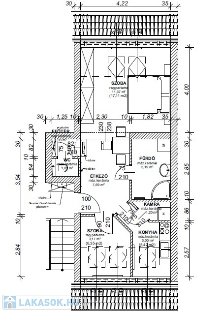 Szoba, étkező, külön konyha, kamra, közlekedő, dolgozószoba/gardróbhelyiség,