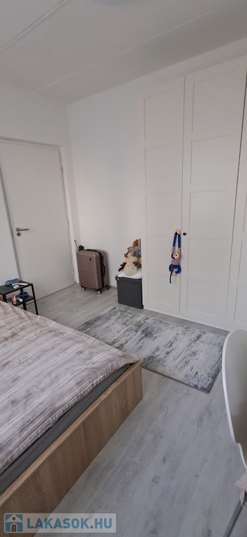 A szobák laminált padlóval borítva, a többi helyiség járólapos. Bejárati ajtó műanyag, nyílászárók redőnnyel ellátva.