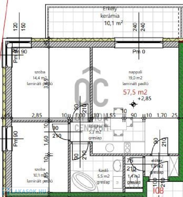 Az ingatlan alapterülete 57,5 négyzetméter, amely három kényelmes szobát rejt magában, így bőséges teret biztosít a mindennapi élethez.