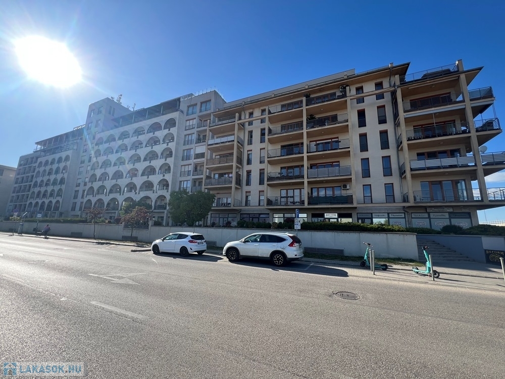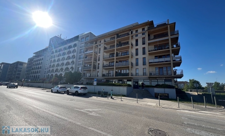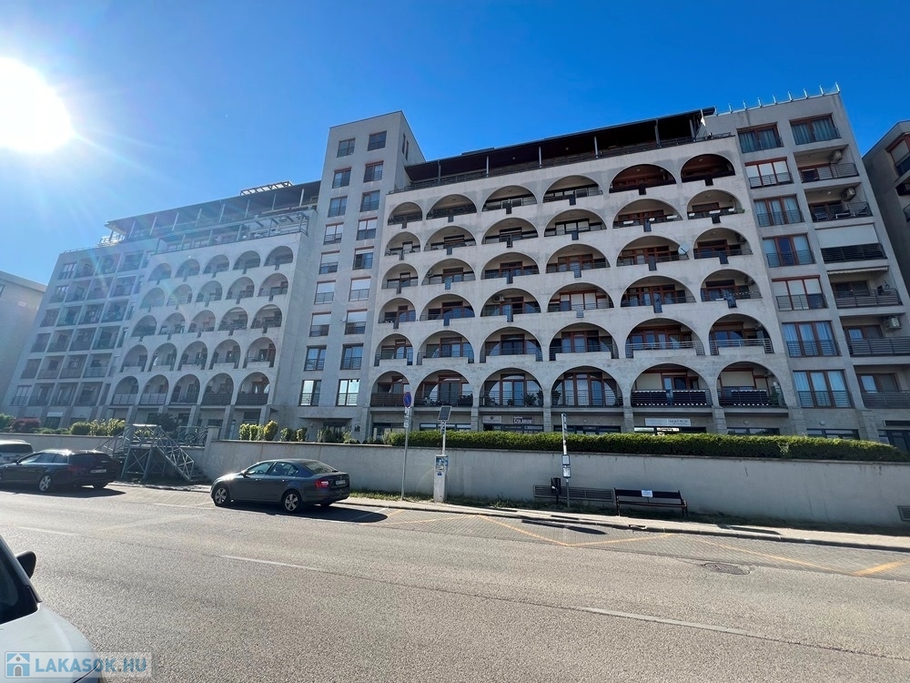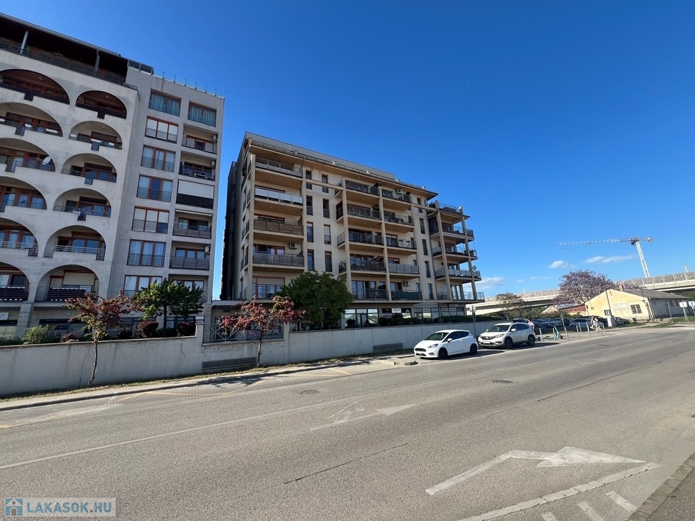 Győr-Belvárosának rendkívül kedvelt részén, a DUNAPART REZIDENCIÁBAN, újszerű épület, liftes társasház 1. emeletén, amerikai konyha – étkező – nappali + 1 hálófülkés, jó állapotú, 36 m2 hasznos alapterületű, alacsony rezsijű téglalakás, 10 m2-es ERKÉLLYEL eladó.
