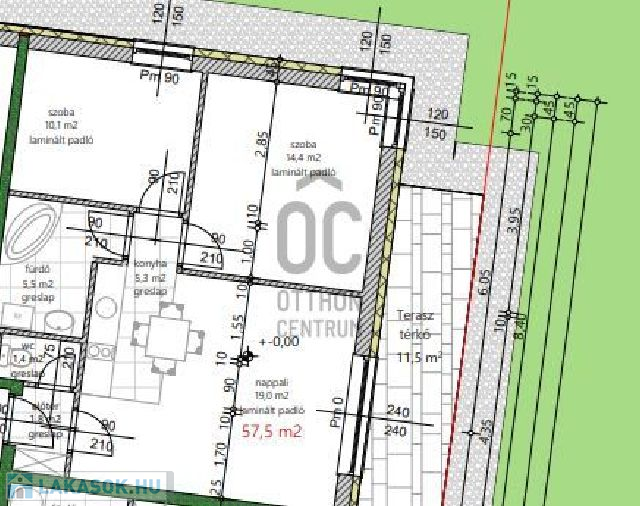 Az ingatlan alapterülete 57,5 négyzetméter, amely három kényelmes szobát rejt magában, így bőséges teret biztosít a mindennapi élethez. Kertkapcsolata 97 nm.