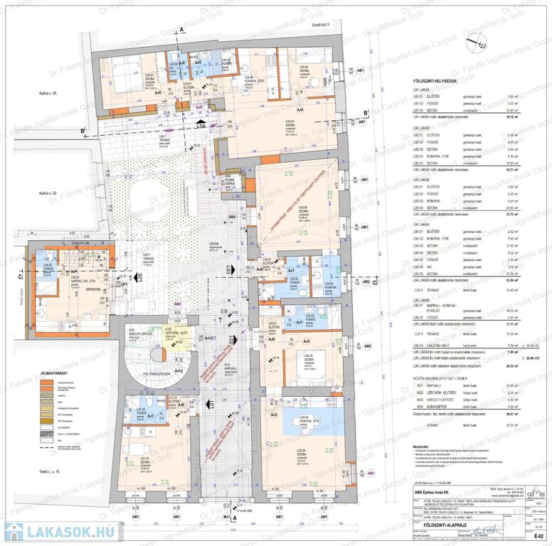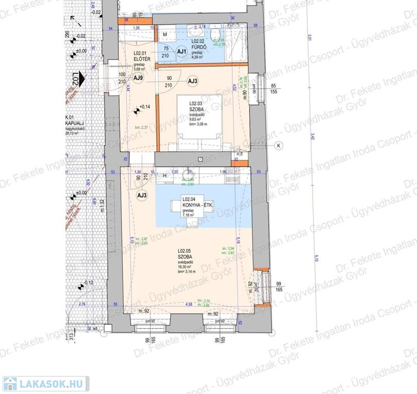 L02: 43,71 nm, földszint, nappali + 1 szoba, NY-i fekvés, 2 oldalról világos lakás.