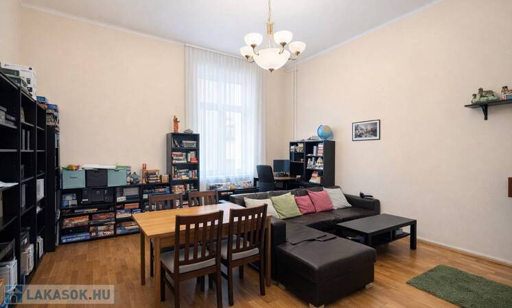 A lakás nagypolgári hangulata azonnal megfogja az embert: nagy ablakok, rengeteg természetes fény, kényelmes elosztás és a 3,5 méteres belmagasságnak köszönhetően, egy olyan tágasság, amit a modern újépítésűek már ritkán adnak.