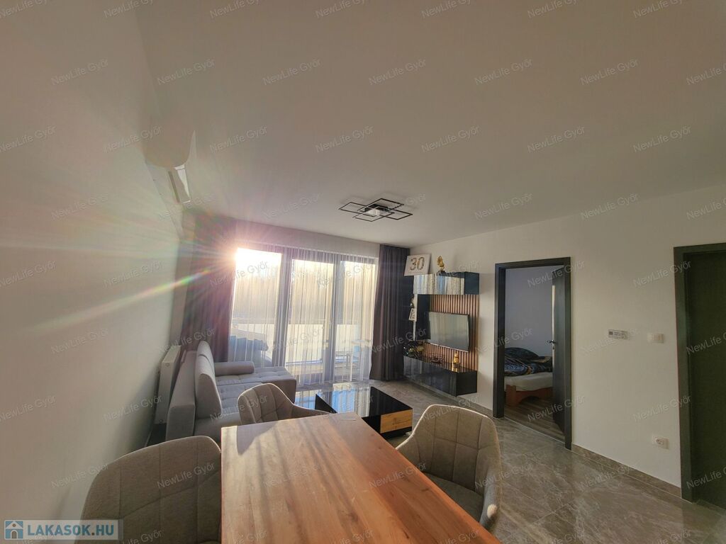 Eladó teljesen felújított, bútorozott 1. emeleti téglalakás saját parkolóval Győr-Ménfőcsanakon – azonnal költözhető!