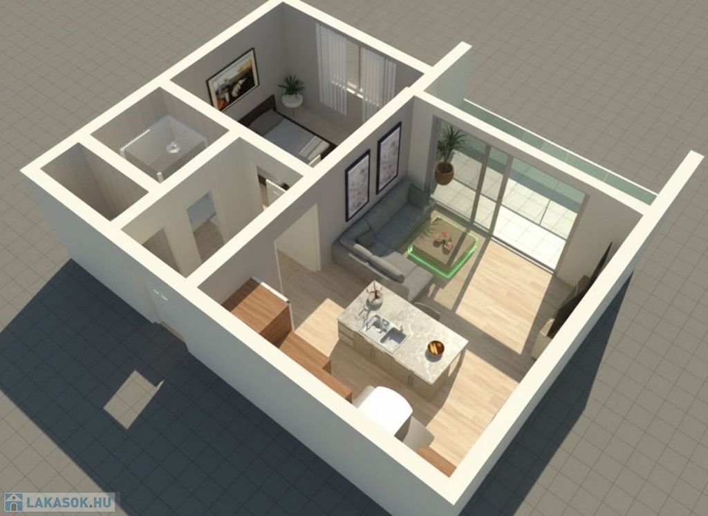 Győr-Nádorvárosban 25 lakásos liftes társasház első emeletén, 49 m² hasznos alapterülettel, 12,21 m2-es szobával és tágas nappali + konyha + étkező kialakítással, különálló fürdőszobával és toalettel, valamint 8,36 m²-es terasszal rendelkező, prémium minőségű, ÚJ ÉPÍTÉSŰ lakás eladó.