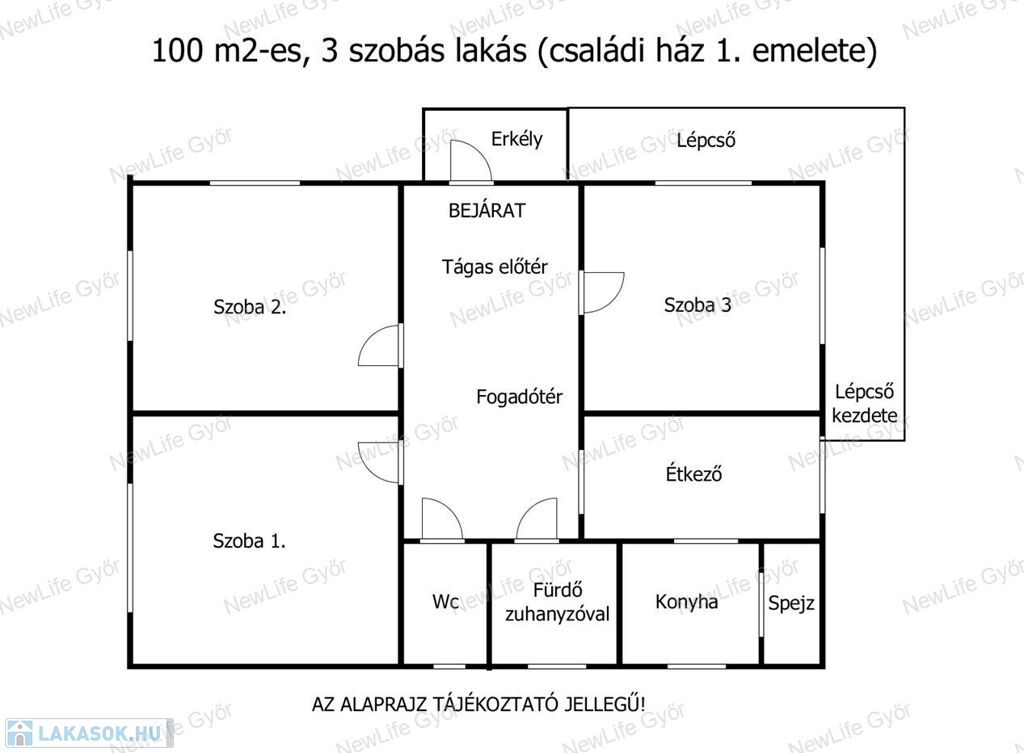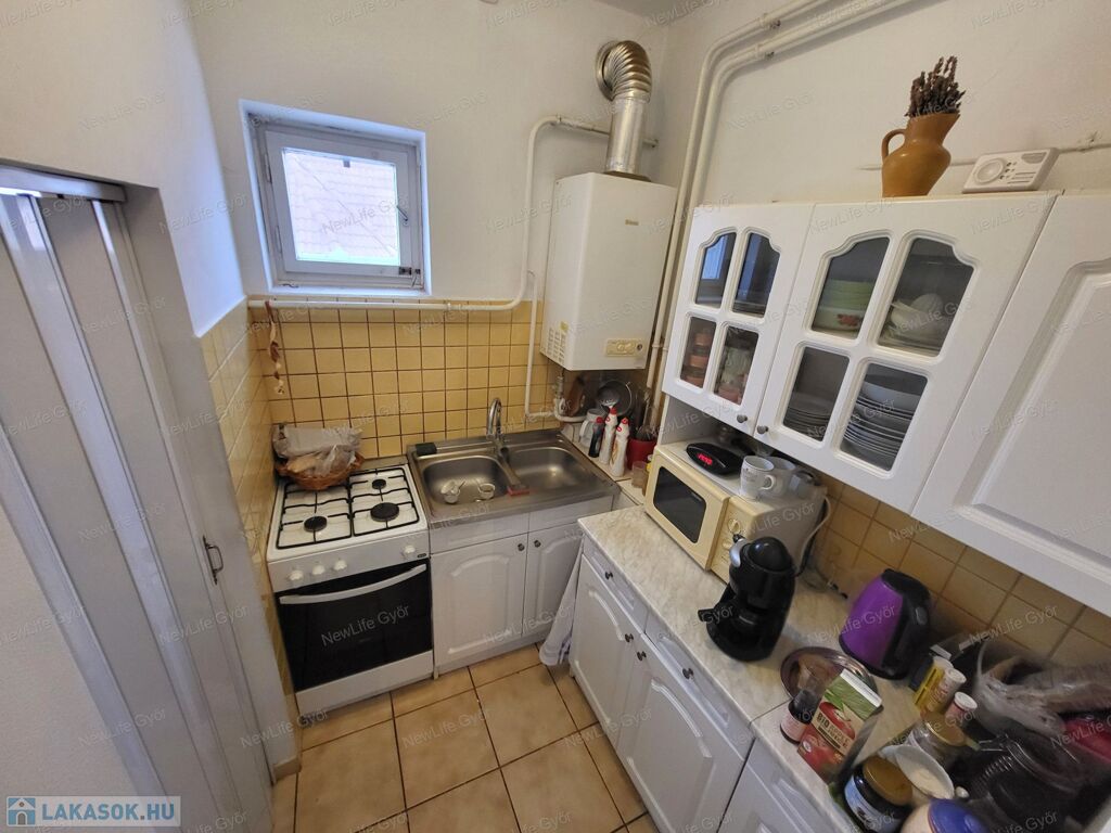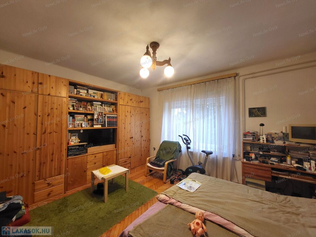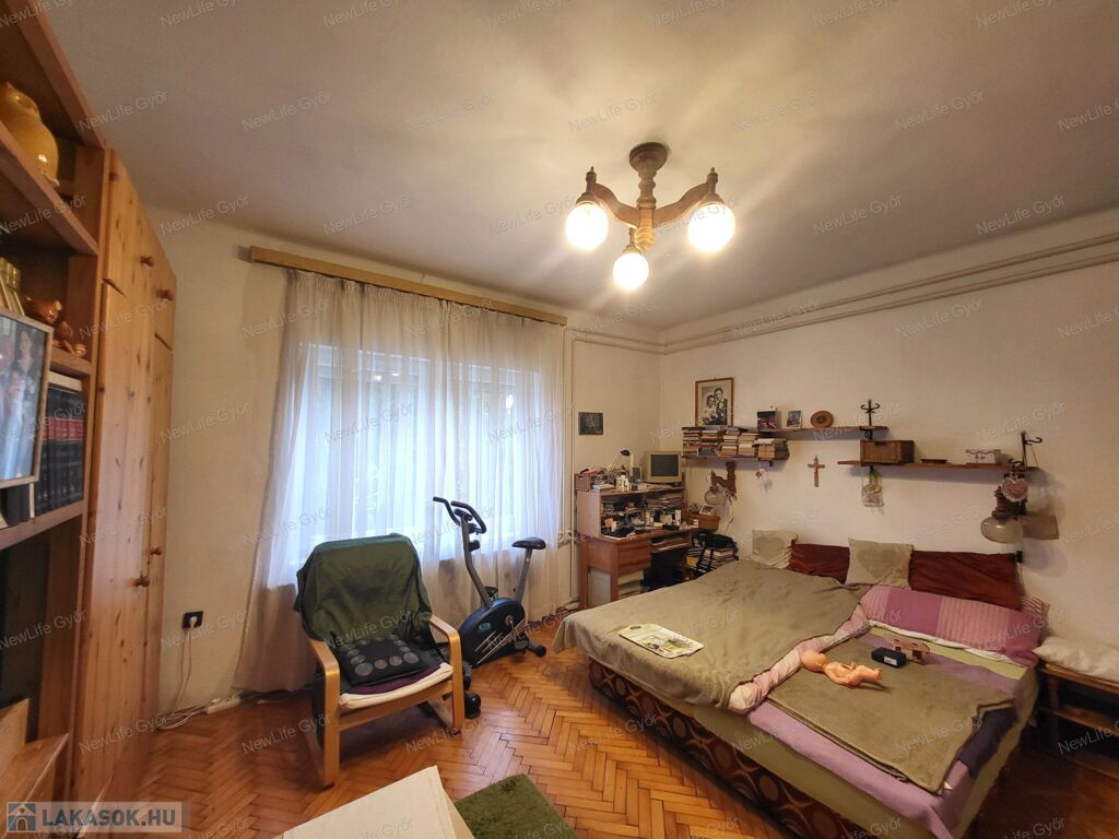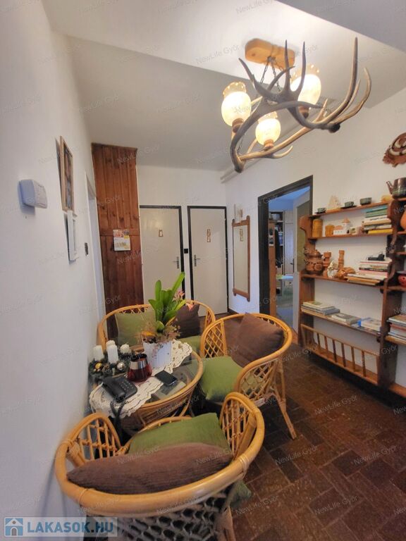 Győr–Ménfőcsanakon, frekventált, mégis nyugodt kertvárosi környezetben eladó egy kétlakásos társasház első emeleti, külön bejáratú lakása, amely valójában egy családi ház teljes felső szintjét jelenti, saját használatú kerttel és melléképületekkel.