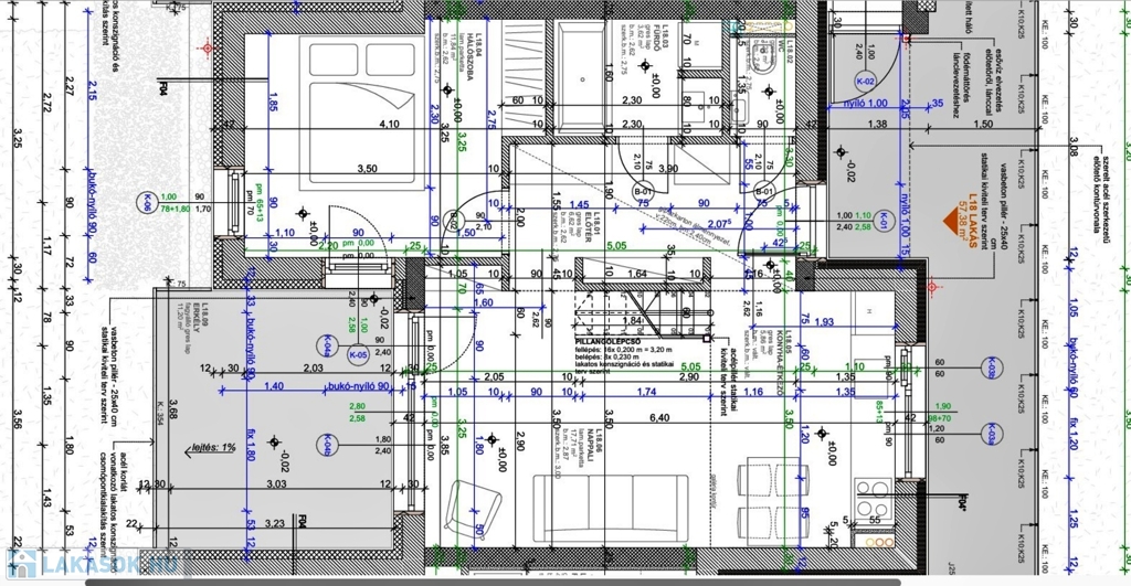 Az első emeleti, belső kétszintes 57,51 m2-es L18 LAKÁS HELYISÉGEI: