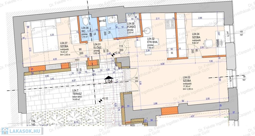 L04 - földszinti 51,25 nm, 3 szobás lakás, + 15,46 nm terasz, D-DNY-i fekvés.